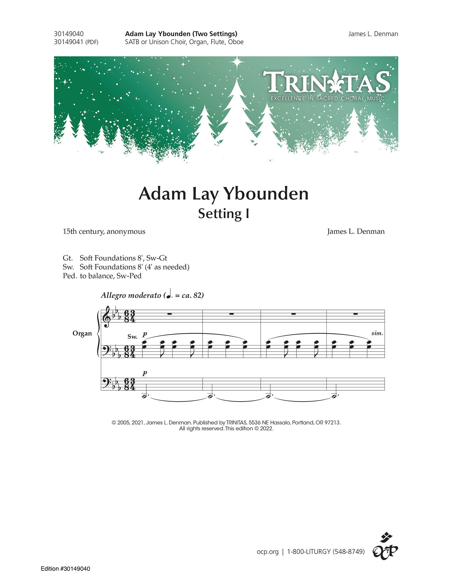 Two separate, original musical settings of the same text for Advent are presented in this octavo. Both evoke the late medieval era of when the lyrics were written by using pedal points, drones, and modal harmonies. The first, more florid SATB setting augments the organ accompaniment with integral flute and oboe parts and a surging hemiola effect, alternating measures of 6/8 and 3/4. The choir is mostly unison throughout, only breaking into full harmony at the final fortissimo. The second setting is for unison choir (until the final four measures) with a spare organ accompaniment and a straightforward triple-time setting, nonetheless beautiful for its simplicity.