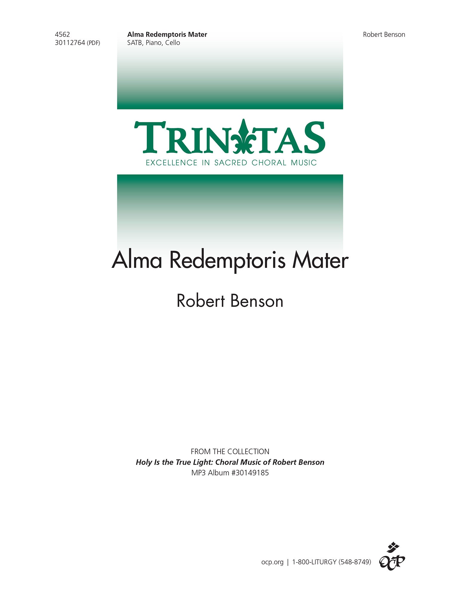 Marian antiphon _x001C_ Alma Redemptoris Mater_x001D_ is traditionally sung after night prayer from the beginning of Advent through February 1. Robert Benson has beautifully arranged this ancient chant for SATB choir, piano and cello. In a lovely coupling of the old and the new, Benson begins and ends this piece with a solo cello, layering the voices and instrumentation throughout the piece.