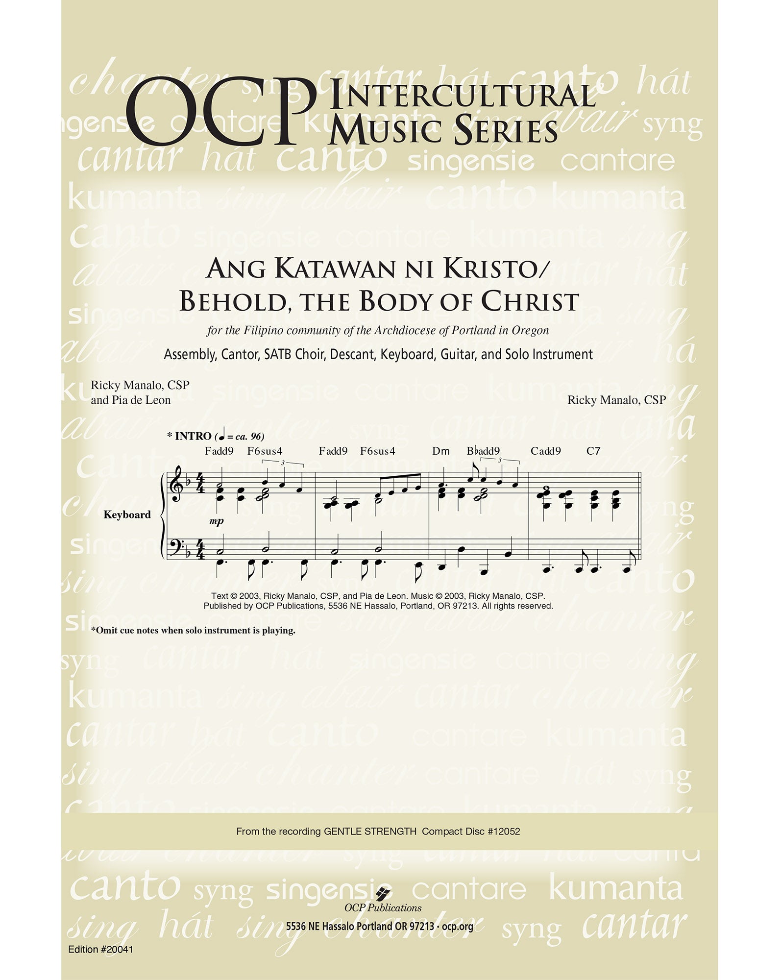From Manalo_x0019_ s Gentle Strength, a collection of multilingual songs for the liturgy (with particular focus on Filipino music), this Communion song has a memorable melody, perfect for assembly participation. The refrain is bilingual (_x001C_ Ang Katawan ni Kristo_x001D_ is Filipino for _x001C_ the body of Christ_x001D_ ), and the verses are in English. Add a flute (or other C instrument) on the included Solo Instrument part for extra texture.