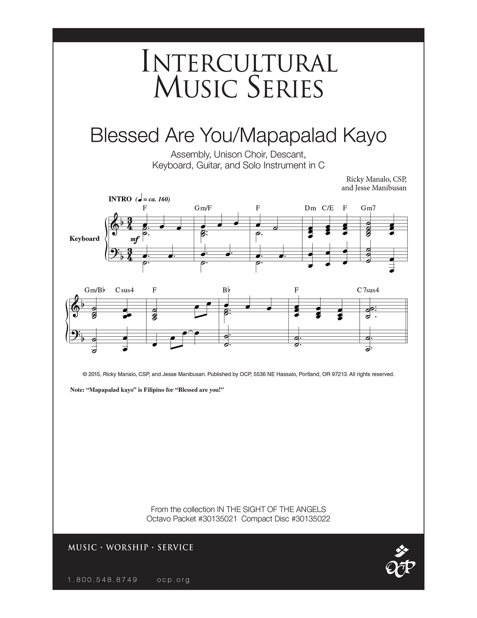 In 2015, Pope Francis made an historic visit to the Philippines. As part of that celebration, the Archdiocese of Manila held an evangelization conference and invited representatives from OCP (Ken Canedo, Jesse Manibusan, and Ricky Manalo) to attend and perform. _x001C_ Blessed Are You/Mapapalad Kayo_x001D_ was composed for that occasion. There are many events when one may sing this joy-filled song, from catechetical lessons to worship events based on the Beatitudes. Liturgical themes of the song include social justice and solidarity with those who live in the margins of our society.