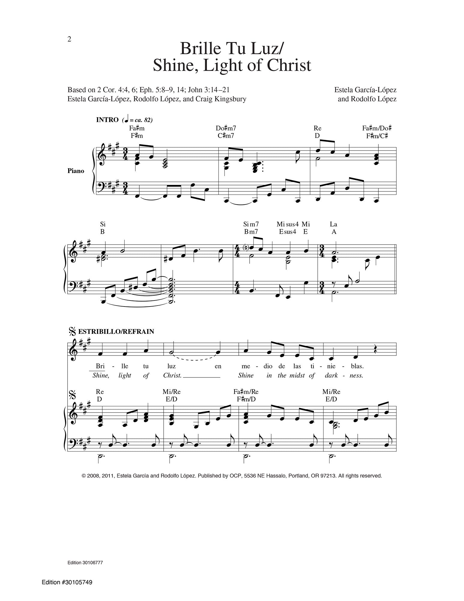 This meditative, bilingual song in a languid triple meter, implores Christ to shine in our lives in the midst of darkness and to renew our hearts with gladness. Although in A major, the first half of the refrain focuses on the subdominant, with stepwise rising and falling chords over a pedal D bass note. This reflective musical texture and the subject matter of the verses_x0014_ which dwell upon topics such as care of the sick, discipleship, healing, petition/prayer_x0014_ make this ideal for Lent.