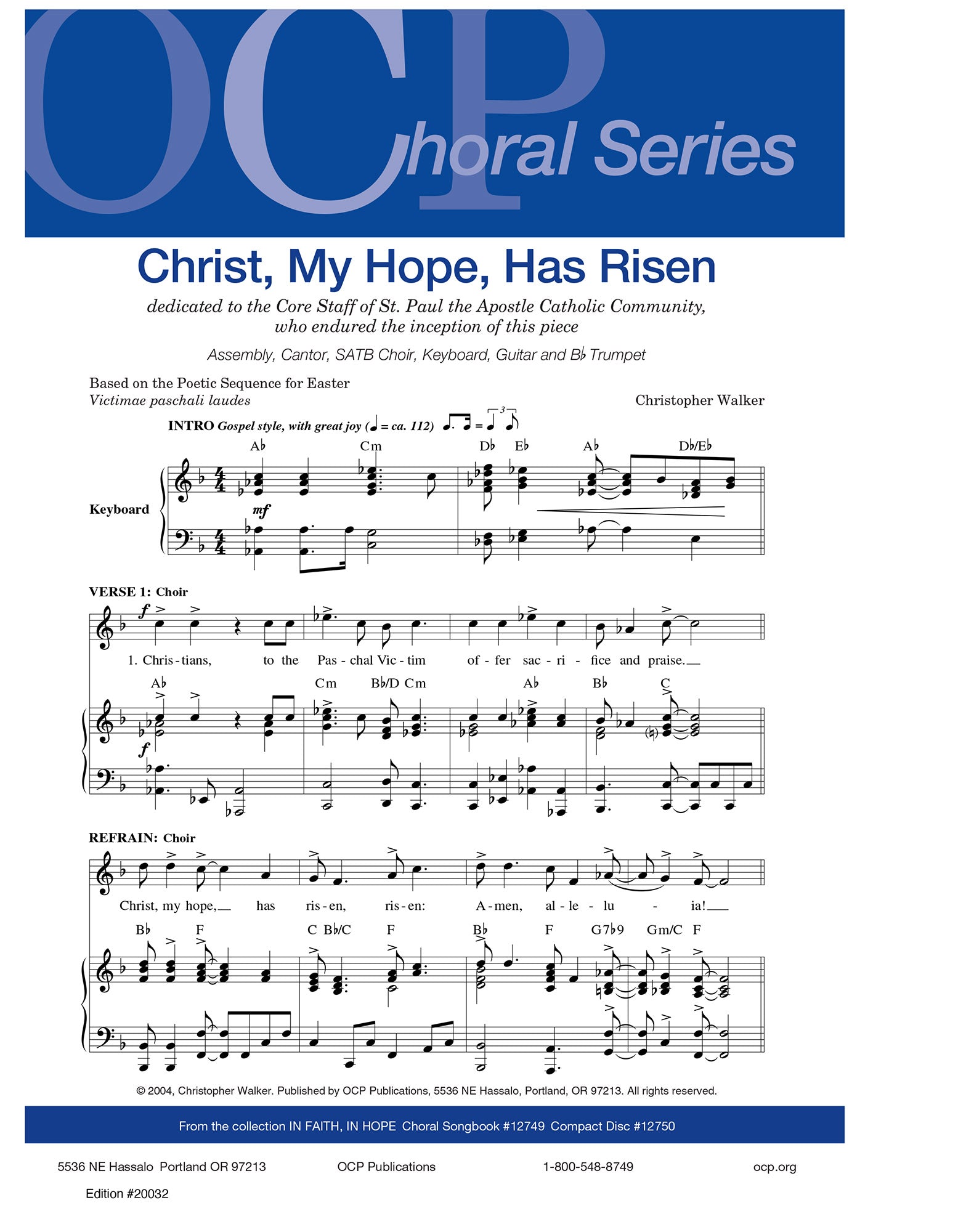 This setting of the Poetic Sequence for Easter beautifully pairs the gospel and blues style in a way that is accessible for most choirs. It is scored for SATB choir with a soaring descant, as well as a trumpet part which adds a level of fanfare appropriate to the Easter season. The syncopated rhythms in the melody add to the joyful exuberance that accompanies the Lord's resurrection.