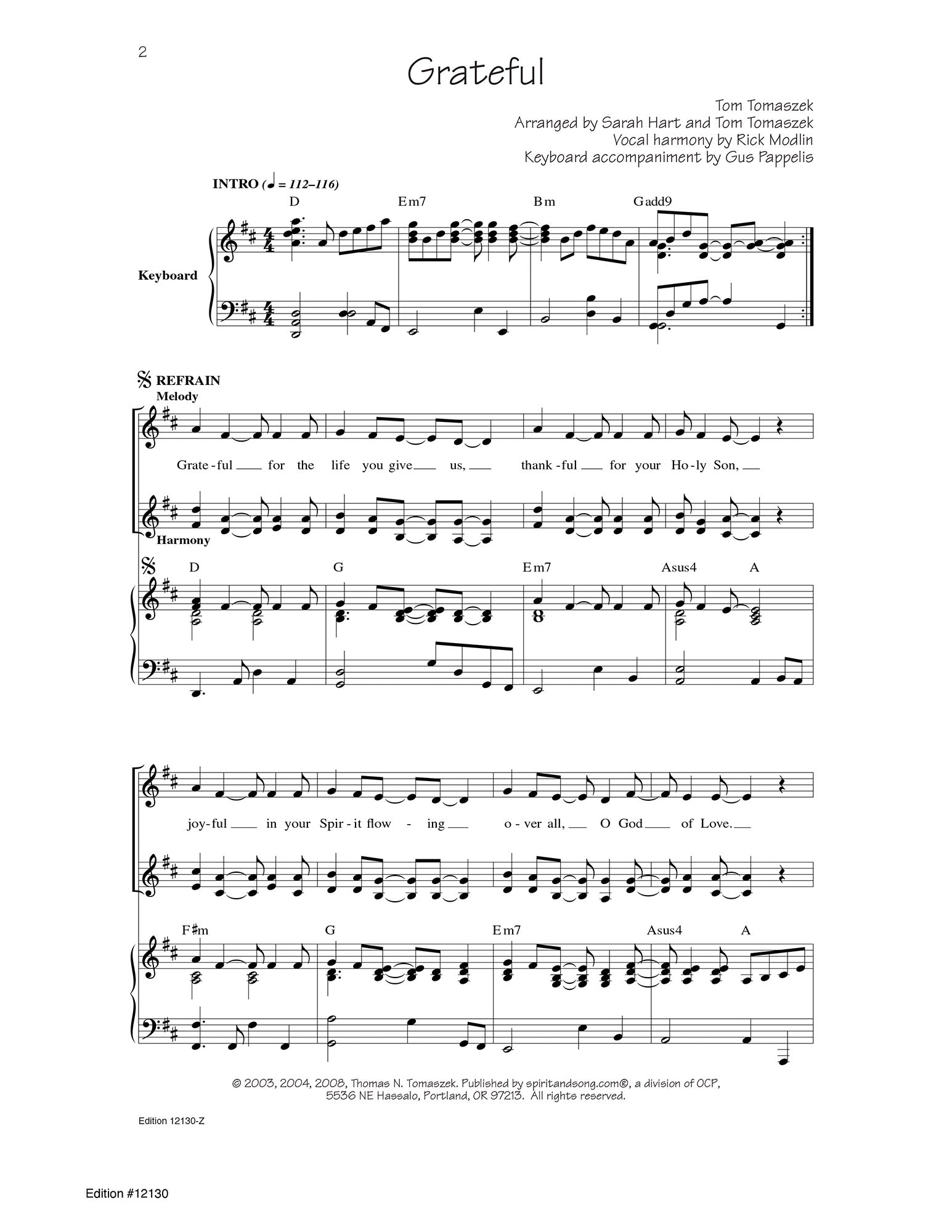 This contemporary song of praise touches on the topics of joy, love of God for us, and thanksgiving. Approachable syncopations and a straightforward harmonic scheme will be easily learned by the assembly. Three-part vocal harmonies flesh out the refrain and there is an optional harmony on the verses. Parts for keyboard, guitar, and solo instrument are included.
