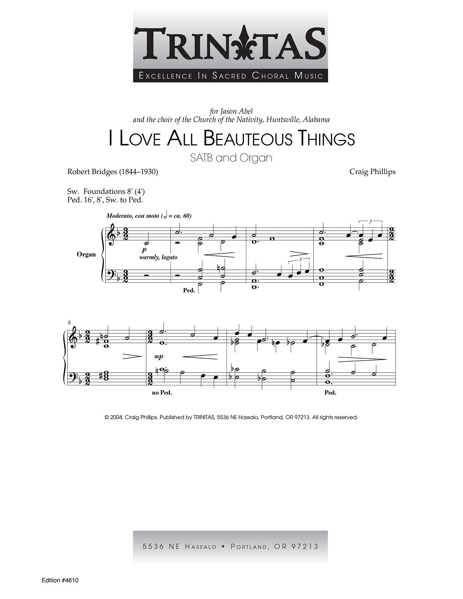 Robert Bridges_x0019_ poem on themes of Praise and Creation is set here for SATB choir and organ. By turns thoughtful, then exuberant, then returning to a quiet ending, this piece for the medium-to-advanced choir would be fitting for a reflective time during liturgy, or for concert use.