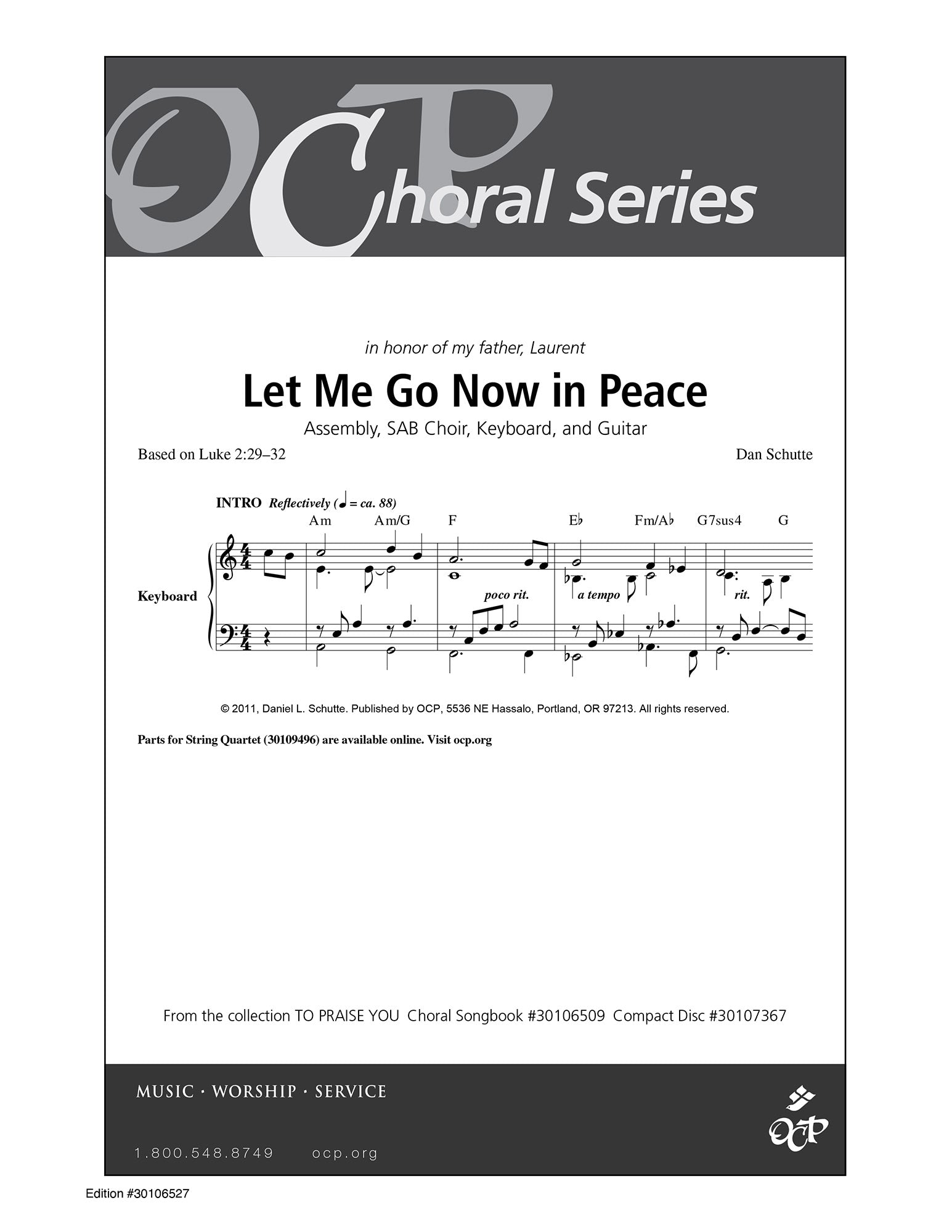 Suitable for funeral liturgies, the lyrics of this piece are based on the _x001C_ Nunc Dimittis_x001D_ (Luke 2). A simple accompaniment for keyboard (or guitar) with a slowly descending stepwise bassline subtly underscores the lyrical emphasis on a life well spent and the approaching time of eternal rest. Equally effective if sung as a solo or with the provided SAB harmonies, the piece can be further supplemented by string quartet (parts available online).