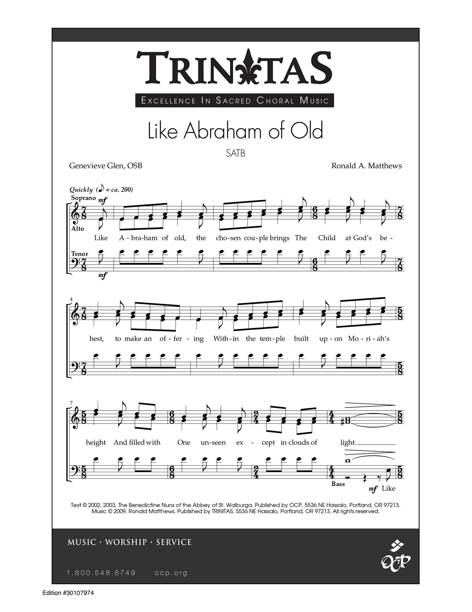The rich text by Benedictine Sister Genevieve Glen ties together themes of sacrifice from both Old and New Testaments, ending with a meditation on Mary's silent acceptance of the sacrifice of her Son. An excellent anthem for Holy Family, Presentation of the Lord, and Marian feasts. For SATB choir a cappella, medium difficulty.
