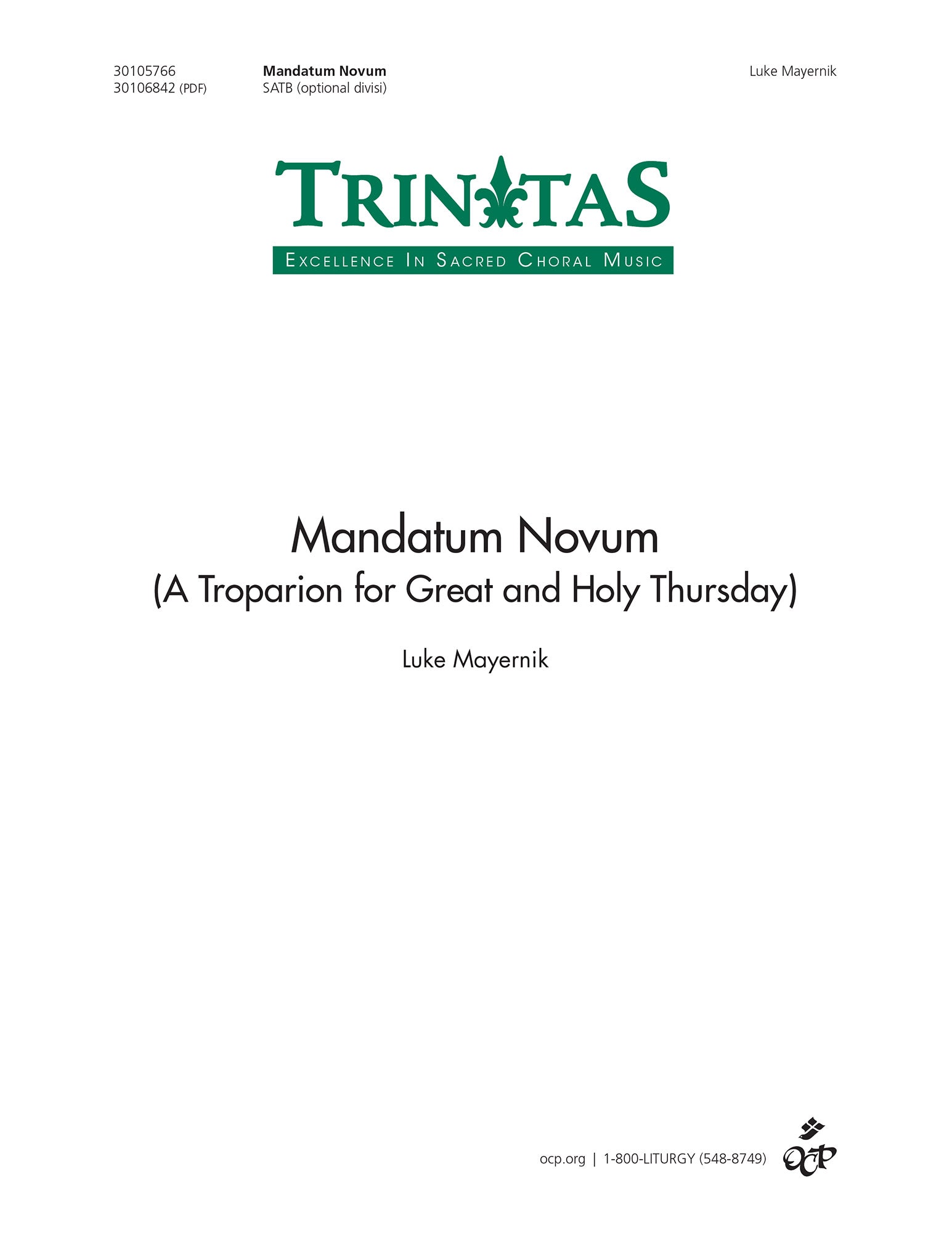A study in contrasts, this piece alternates between metered, homophonic, divisi SATB choral sections in Latin (John 13:34) and unison (or solo) chanted sections in English (from the Gospels of Matthew, Mark, and John). Dense harmonic writing and tight vocal sonorities make this piece suitable for more advanced choirs. The mostly syllabic setting of this text, fashioned after Eastern Orthodox traditions, means that the lyrics are always clear and understandable.