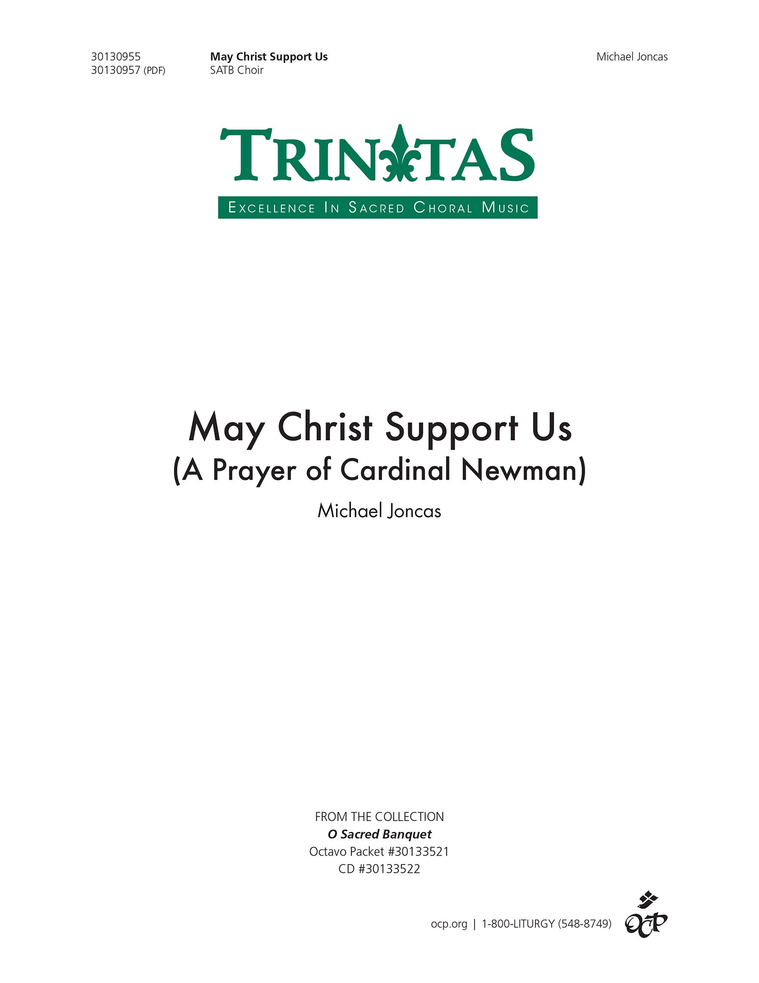 This beautiful anthem is a succinct setting of one of Cardinal Newman_x0019_ s prayers. Ideal as a post-Communion reflection, the score is structured to allow either a simple SATB rendition or a fuller setting using SSAATBB divisi. Short melismas, slow triplets, and tied figures impart speech-like rhythms to the piece despite remaining in 4/4 throughout. This song is especially appropriate on All Saints/All Souls, as a response to the Word of God at Evening Prayer or Night Prayer, at celebrations of the Anointing of the Sick, or at funerals.