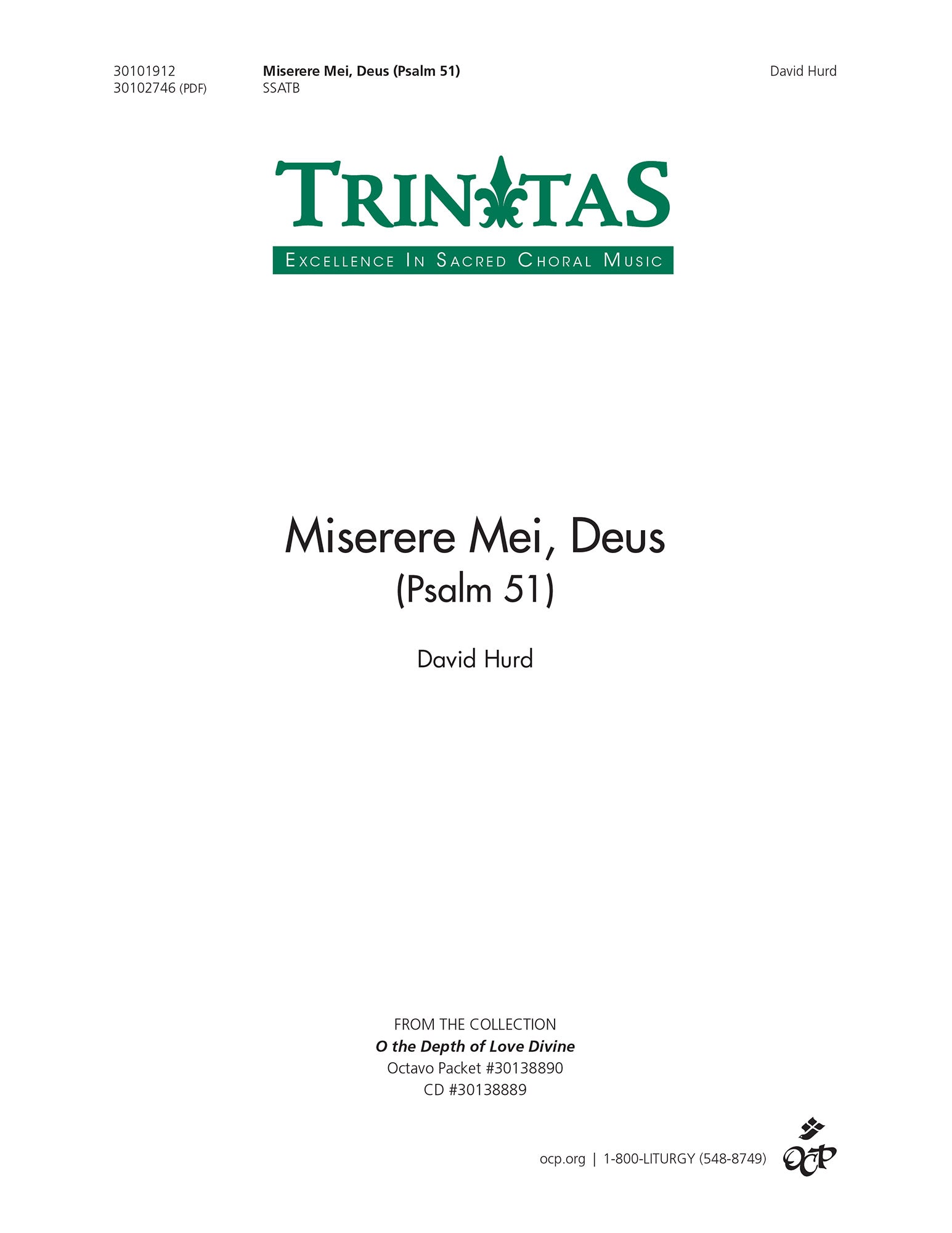 This choral realization of Psalm 51 by AGO Distinguished Composer David Hurd is ideal for Ash Wednesday and throughout Lent. Perfect for choirs looking to compliment Allegri's setting of the same text.