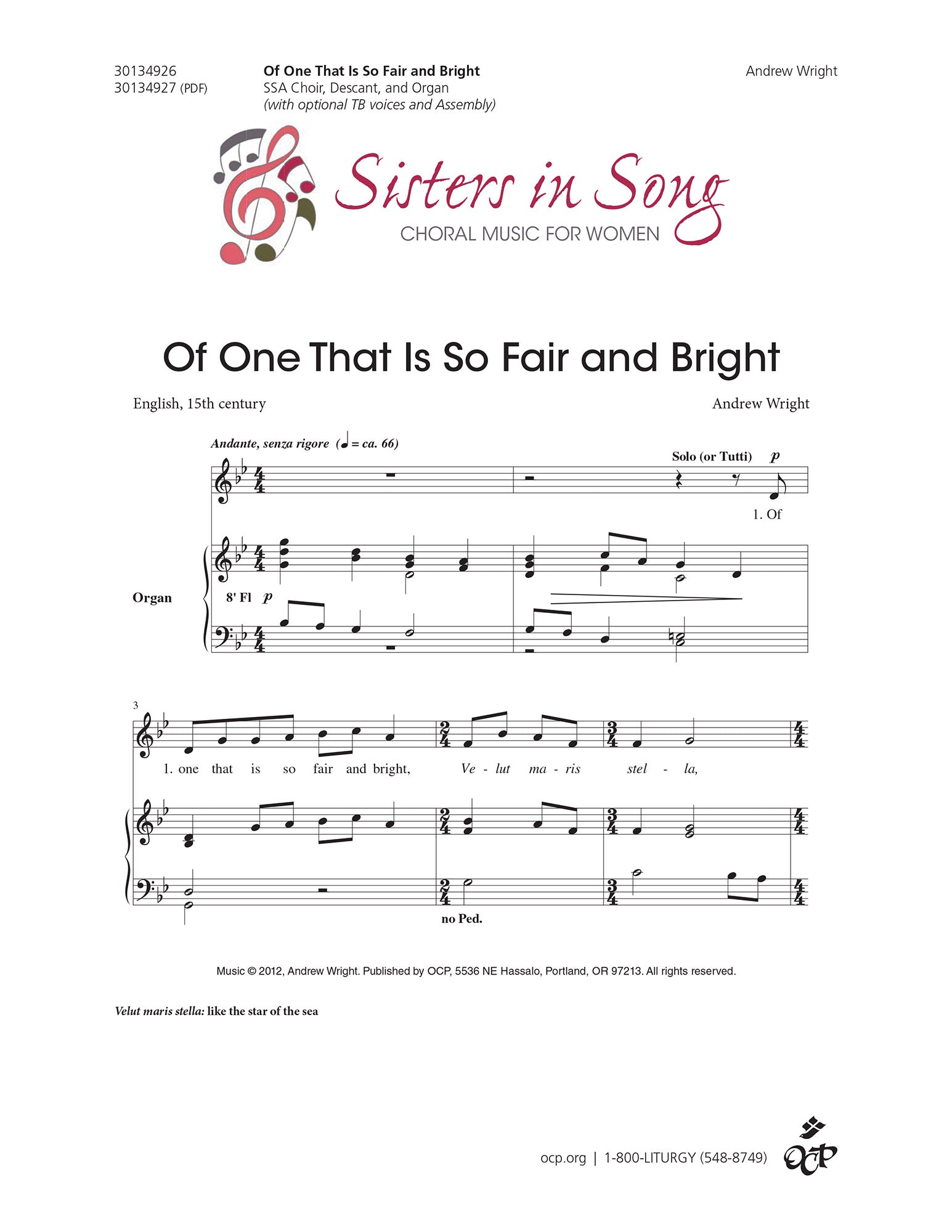 This beautiful setting for SSA choir of a 15th-century macaronic text (English and Latin) is appropriate for the Fourth Sunday of Advent or, indeed, any Marian feast. The score includes a translation of the Latin text. Modal cadences, the mixed meter that accommodates the poetry, and the radiant Picardy third at the very end give the piece a flowing, timeless quality.