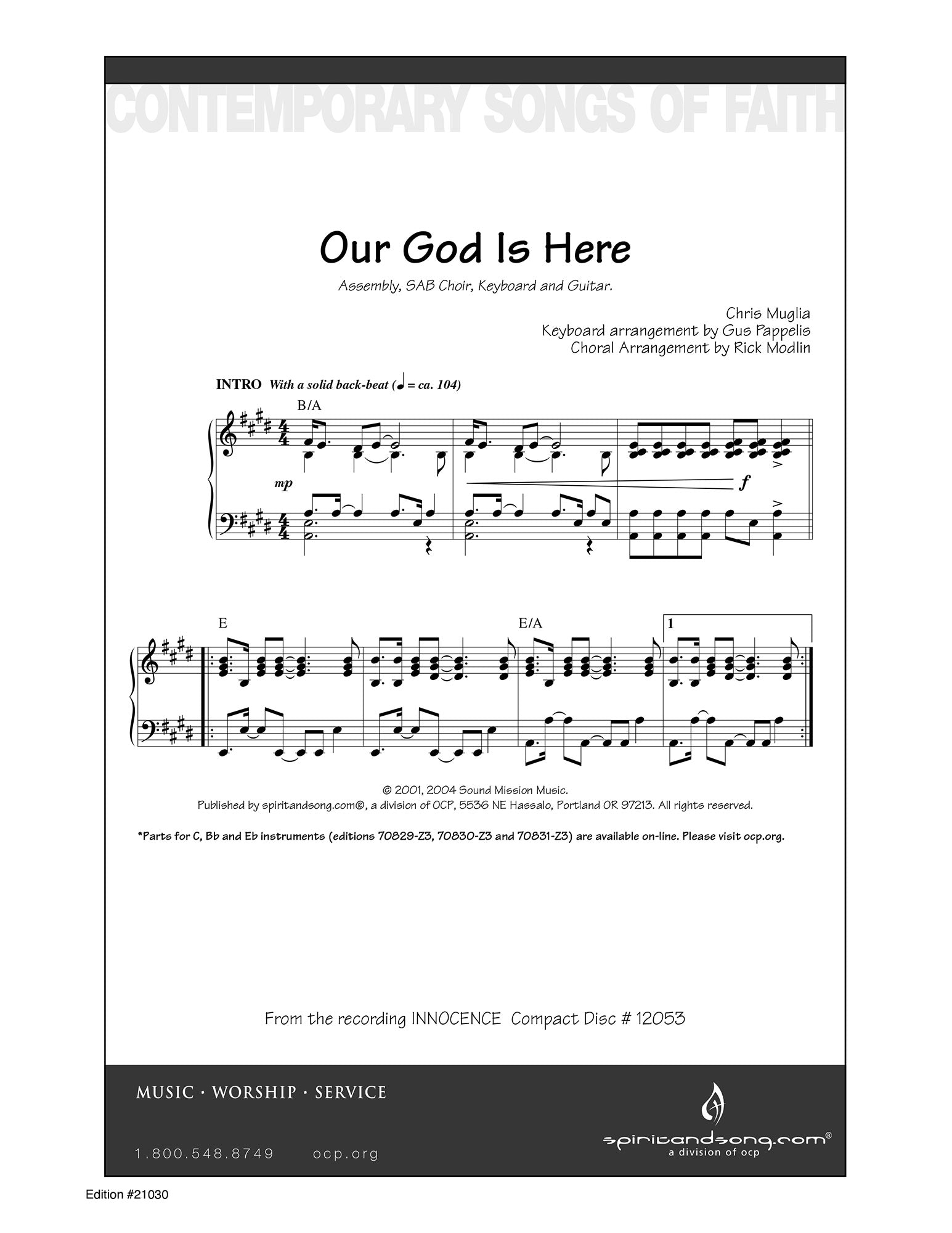 This well-known praise-and-worship song with catchy hooks over driving rock rhythms and an easy-to-sing refrain will ensure that assemblies quickly learn it. It is a great choice for youth gatherings and for themes centered around the kingdom and reign of God. Scored for three-part (or SAB) choir, keyboard, and guitar accompaniment.