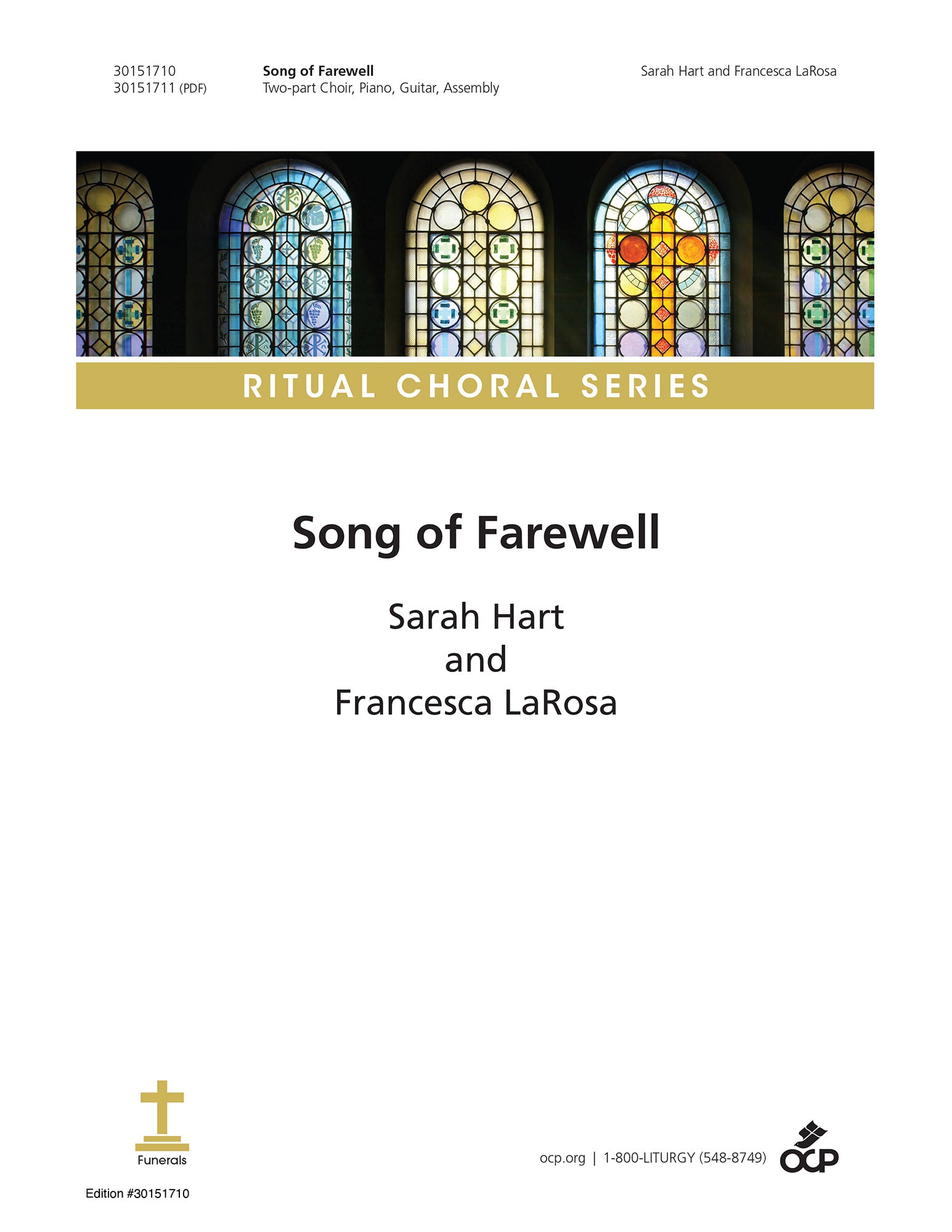This new musical setting of the Song of Farewell will provide comfort to those who are mourning the loss of their loved one. The officially approved verbatim text from the Order of Christian Funerals is laid out in a very clear way, punctuated by the music for the rite, set simply for two-part choir on the verses with an assembly friendly response. The music naturally follows the rhythms of the text and will come together with very little rehearsal time; its attractive, appealing melody will encourage assembly participation. The final antiphon, for use as the casket is led in procession from the church, can be extended by using the companion octavo _x001C_ May the Angles Lead You Home,_x001D_ ed. 30151223 (also by Hart and LaRosa).