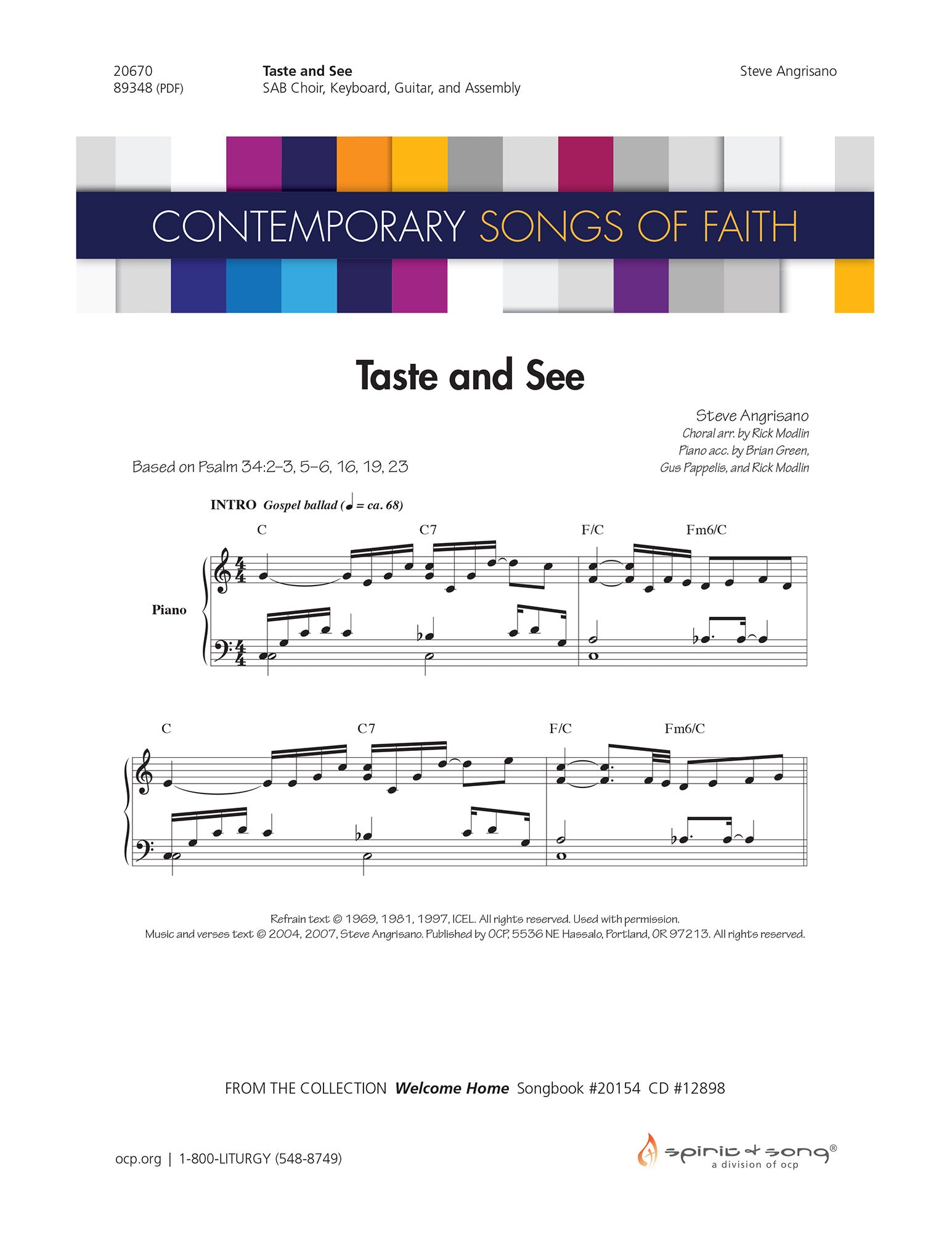 This contemporary setting of Psalm 34 is not only suitable for use as a responsorial psalm, it is also suitable as a communion song. One of the proper psalms for the Rite of Marriage, its pleasant accompaniment makes it a popular choice for couples preparing for marriage.
