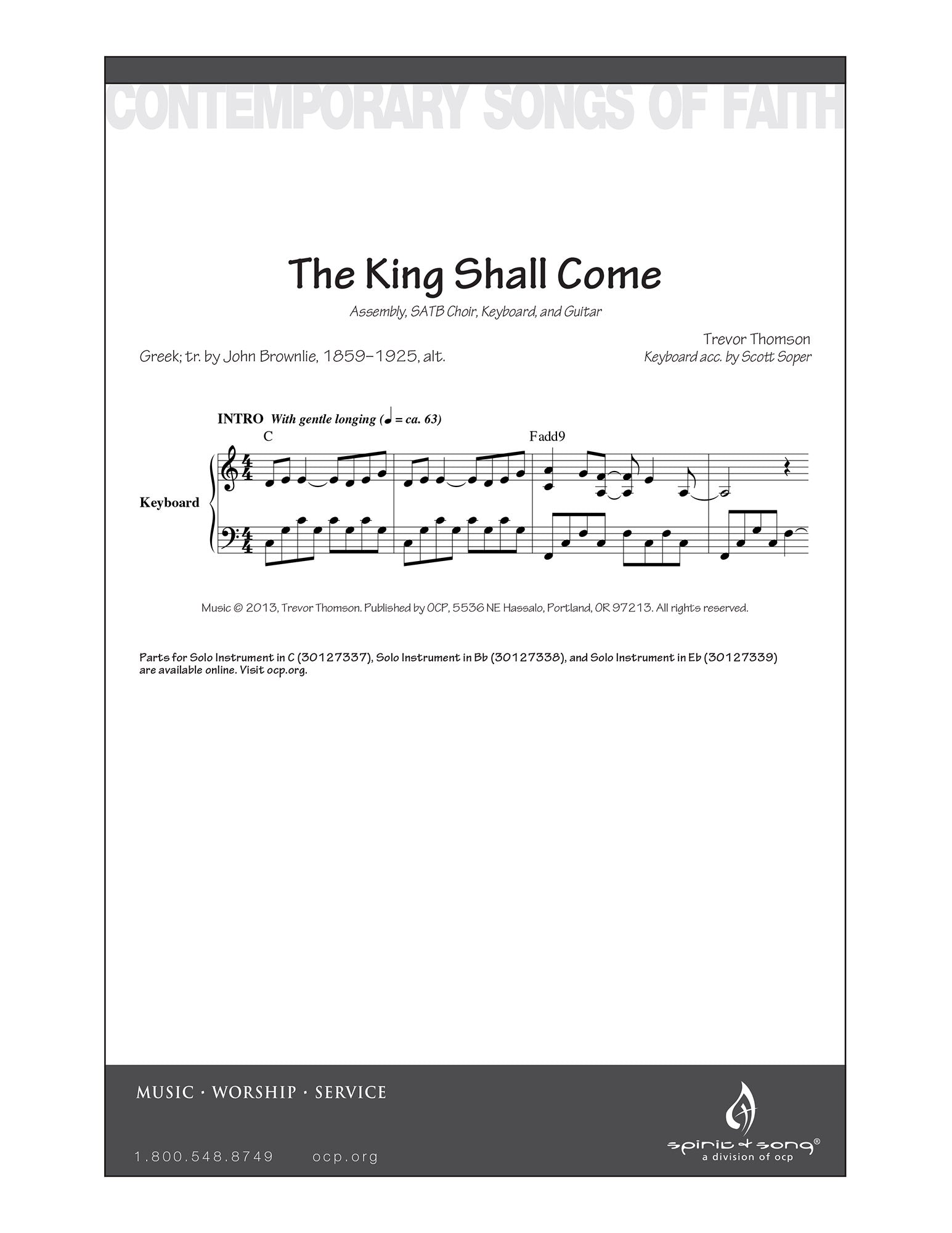 Ideal for Advent celebrations (also Evening Prayer), this octavo presents a contemporary musical take on the traditional hymn text by John Brownlie. This assembly song is supported by SATB choir, keyboard, and guitar. The gentle rocking of the accompaniment figure in the keyboard and mild syncopations of the melody produce a meditative quality, allowing the faithful the chance to reflect on the ritual action (making this song especially useful during the Presentation and Preparation of the Gifts).