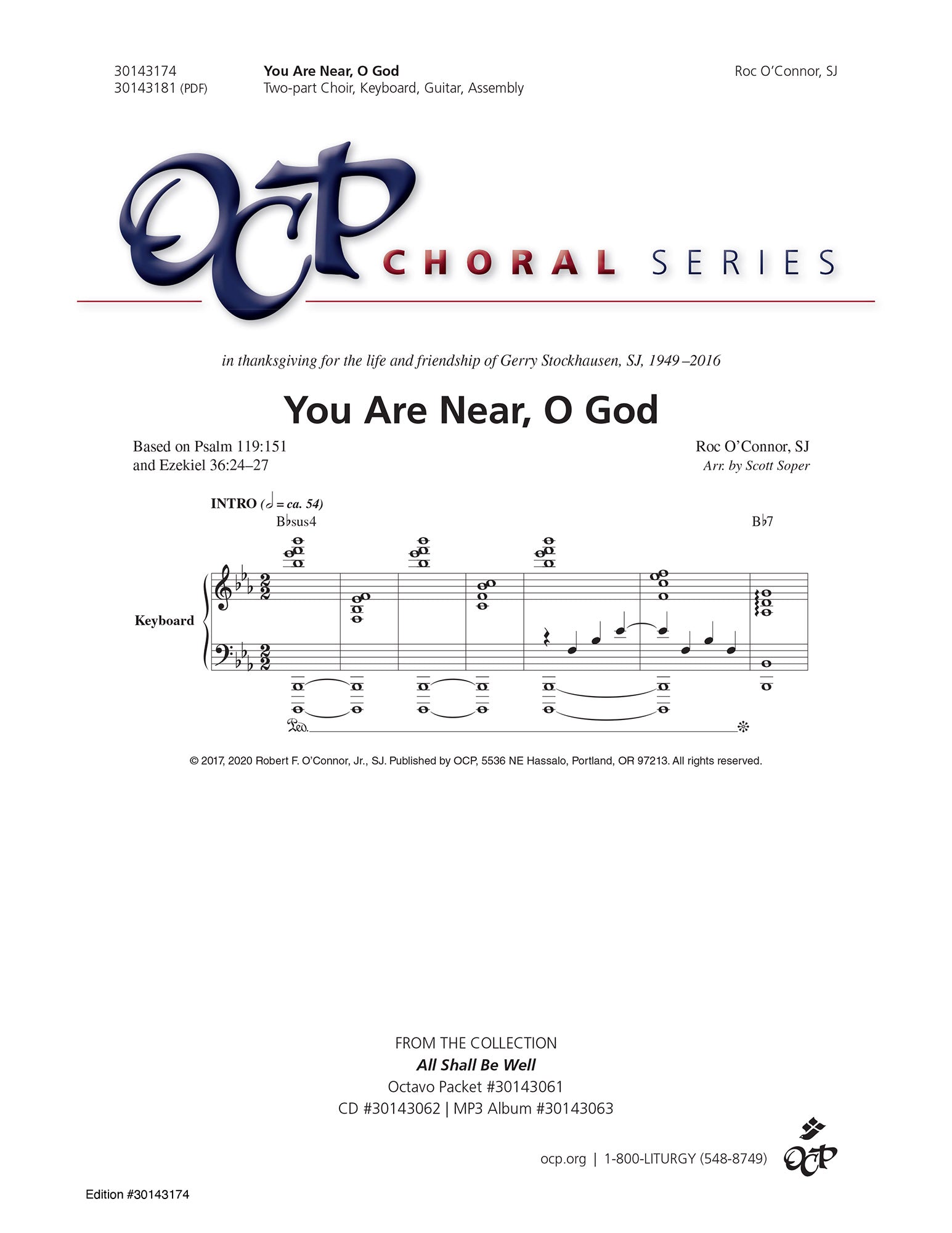 This plaintive assembly piece situates singers in an _x001C_ I-Thou_x001D_ relationship with God using the proclamation _x001C_ You are mine!_x001D_ Alternating between metered refrain and chanted verse, this song calls for a confident cantor who can lead the assembly to join in, tenderly expressing unity in God_x0019_ s presence. Scored for two-part choir and keyboard, this octavo also comes with a guitar part including fret diagrams for all of Roc_x0019_ s colorful chord voicings.